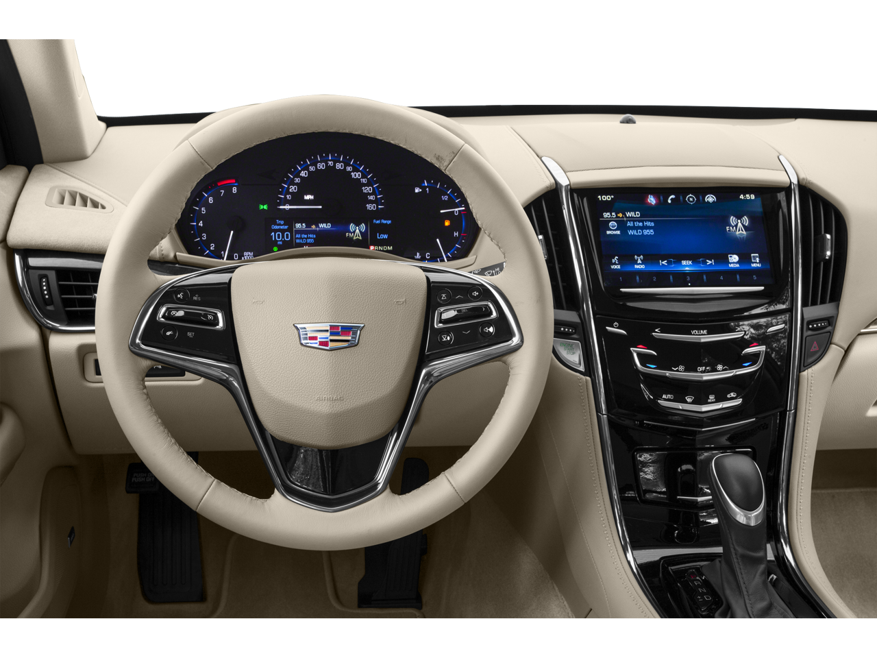 Cadillac CUE & Navigation (110V Power Receptacle, Bose Premium Surround Sound 10-Speaker System, Radio: Cadillac CUE Info/Media Ctrl w/Embedded Nav, and SiriusXM & HD Audio System), Cold Weather Package (Heated Driver & Front Passenger Seats and Heated Steering Wheel Rim), Luxury Equipment Group 1SF (3.27 Rear Axle Ratio, 4-Wheel Disc Antilock Brembo Fr Performance Brakes, Active Aero Grille, Bluetooth® For Phone/Audio, and Wireless Charging), Sun & Sound Package (Power Sunroof), 17 x 8 Polished Aluminum Wheels, 4-Wheel Disc Brakes, 7 Speakers, ABS brakes, Air Conditioning, Alloy wheels, AM/FM radio: SiriusXM, Auto-dimming door mirrors, Auto-dimming Rear-View mirror, Automatic temperature control, Bose Premium 7-Speaker Audio System Feature, Brake assist, Bumpers: body-color, Compass, Delay-off headlights, Driver & Front Passenger Seat Adjusters, Driver door bin, Driver vanity mirror, Dual front impact airbags, Dual front side impact airbags, Electronic Stability Control, Emergency communication system: OnStar Directions & Connections, Exterior Parking Camera Rear, Four wheel independent suspension, Front anti-roll bar, Front Bucket Seats, Front Center Armrest, Front dual zone A/C, Front reading lights, Fully automatic headlights, Garage door transmitter, Heated door mirrors, Illuminated entry, Knee airbag, Leather Seating Surfaces, Leather Shift Knob, Low tire pressure warning, Memory seat, Occupant sensing airbag, Outside temperature display, Overhead airbag, Overhead console, Panic alarm, Passenger door bin, Passenger vanity mirror, Power door mirrors, Power driver seat, Power passenger seat, Power steering, Power windows, Premium All-Weather Cargo Mat (LPO), Premium audio system: Cadillac CUE, Radio data system, Radio: Cadillac CUE Info & Media Control System, Rear anti-roll bar, Rear reading lights, Rear seat center armrest, Rear window defroster, Remote keyless entry, Speed control, Speed-sensing steering, Split folding rear seat, Steering wheel mounted audio controls, Tachometer, Telescoping steering wheel, Tilt steering wheel, Traction control, Trip computer, Turn signal indicator mirrors, Variably intermittent wipers, and Voltmeter.