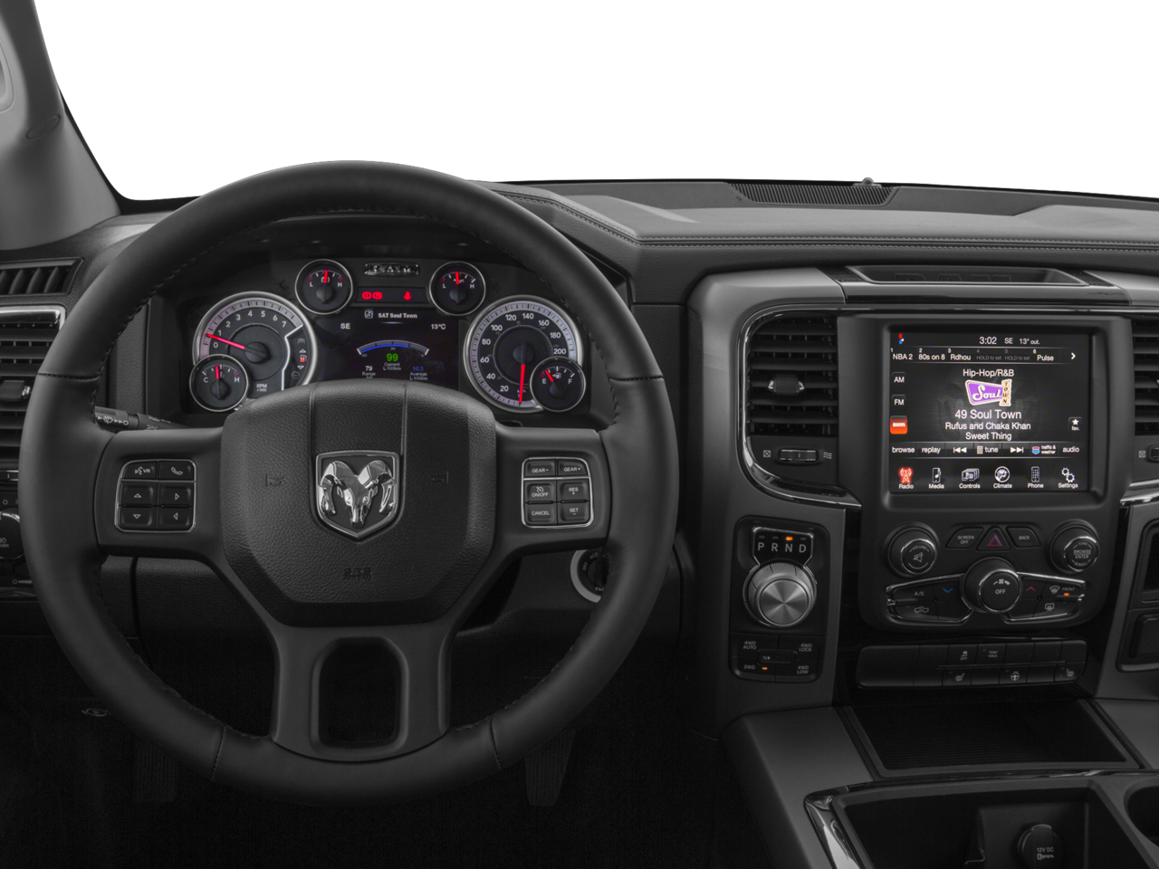 Safety is also a top priority, with features like electronic stability control, traction control, and a suite of airbags providing peace of mind on every journey. The Big Horn package adds even more value with a security alarm, remote start, and a universal garage door opener.