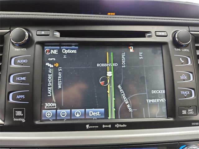 - Radio: Entune Premium JBL Audio w/Nav & App Suite -inc: the Entune Multimedia Bundle (8" high resolution touch-screen w/split screen display, AM/FM CD player, MP3/WMA playback capability, 12 JBL GreenEdge speakers, auxiliary audio jack, USB 2.0 port w/iPod connectivity and control, advanced voice recognition, hands-free phone capability, phone book access and music streaming via Bluetooth® wireless technology), Siri Eyes Free, Entune App Suite, Intelligent Touch controls, SiriusXM Satellite Radio w/3-month complimentary SiriusXM All Access trial, HD Radio, HD Radio predictive traffic and Doppler weather overlay, AM/FM cache radio, Gracenotes album cover art and integrated backup camera display w/dynamic gridlines