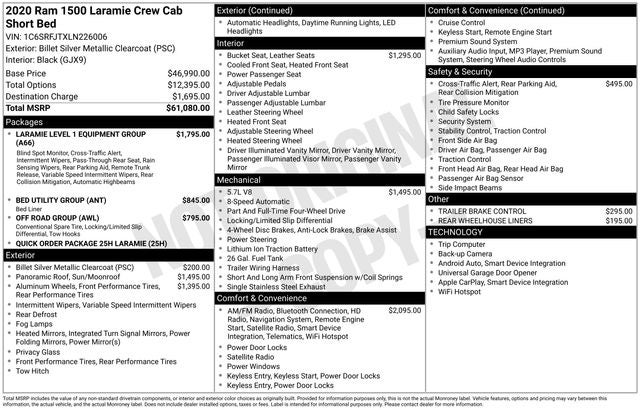 Whether you're tackling challenging terrain, towing a heavy load, or simply enjoying the open road, this 2020 Ram 1500 Laramie is the perfect choice. Experience the power, technology, and comfort that this exceptional truck has to offer.