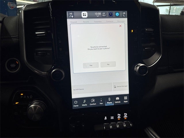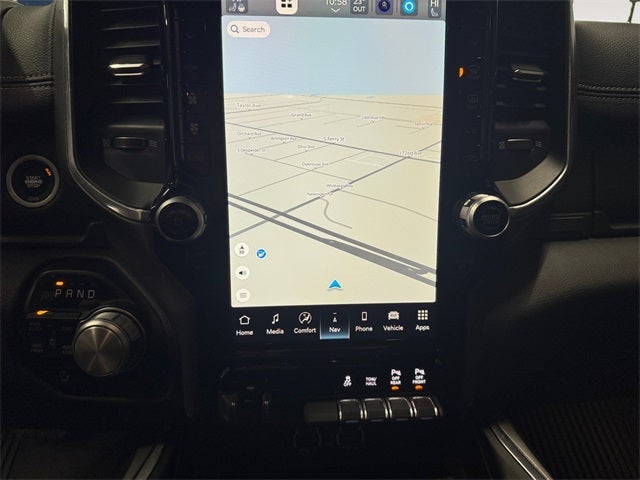 Laramie Level 1 Equipment Group (12 Touchscreen Display, 2nd Row In Floor Storage Bins, 4G LTE Wi-Fi Hot Spot, Apple CarPlay, Auto High Beam Headlamp Control, Blind Spot & Cross Path Detection, Connected Travel & Traffic Services, Connectivity - US/Canada, Disassociated Touchscreen Display, Electric Shift-On-Demand Transfer Case, Foam Bottle Insert (Door Trim Panel), For Details, Visit DriveUconnect.com, For More Info, Call 800-643-2112, Front Door Accent Lighting, Front LED Fog Lamps, Global Telematics Box Module (TBM), Google Android Auto, GPS Antenna Input, GPS Navigation, HD Radio, Integrated Center Stack Radio, Integrated Voice Command w/Bluetooth®, LED Reflector Headlamps, Radio: Uconnect 5 Nav w/12.0 Display, Rain Sensitive Windshield Wipers, Rear Door Accent Lighting, Rear Power Sliding Window, Rear Window Defroster, Remote Tailgate Release, SiriusXM Radio Service, SiriusXM w/360L, and USB Host Flip), Quick Order Package 27H Laramie, #1 Seat Foam Cushion, 10 Speakers, 3 Rear Seat Head Restraints, 3.21 Rear Axle Ratio, 4 Way Front Headrests, 4-Wheel Disc Brakes, 48V Belt Starter Generator, ABS brakes, Adjustable pedals, Air Conditioning, Alloy wheels, AM/FM radio: SiriusXM with 360L, Apple CarPlay/Android Auto, Audio memory, Auto-dimming door mirrors, Auto-Dimming Exterior Driver Mirror, Auto-dimming Rear-View mirror, Automatic temperature control, Brake assist, Bumpers: chrome, Chrome Exterior Mirrors, Class IV Receiver Hitch, Compass, Convex Wide-Angle Exterior Mirror Insert, Delay-off headlights, Driver door bin, Driver Seat Memory, Driver vanity mirror, Dual front impact airbags, Dual front side impact airbags, Electronic Stability Control, Exterior Mirrors Courtesy Lamps, Exterior Mirrors w/Heating Element, Exterior Mirrors w/Memory, Exterior Mirrors w/Supplemental Signals, Front anti-roll bar, Front Center Armrest w/Storage, Front dual zone A/C, Front fog lights, Front reading lights, Front Seat Back Map Pockets, Front wheel independent suspension, Fully automatic headlights, Garage door transmitter, Heated door mirrors, Heated Front Seats, Heated front seats, Heated Steering Wheel, Heated steering wheel, Illuminated entry, Leather steering wheel, Leather Trim 40/20/40 Bench Seat, Low tire pressure warning, Manufacturer's Statement of Origin, Memory seat, MOPAR Front & Rear Rubber Floor Mats, Navigation System, Occupant sensing airbag, Outside temperature display, Overhead airbag, Overhead console, Panic alarm, ParkSense Front/Rear Park Assist w/Stop (DISC), ParkView Rear Back-Up Camera, Passenger door bin, Passenger vanity mirror, Pedal memory, Power 2-Way Driver Lumbar Adjust, Power 2-Way Passenger Lumbar Adjust, Power 8-Way Driver & Passenger Seats, Power door mirrors, Power driver seat, Power passenger seat, Power steering, Power windows, Power-Folding Mirrors, Radio data system, Radio: Uconnect 5 Nav w/8.4 Display, RAM Grille Badge - Chrome, Rear 60/40 Folding Seat, Rear anti-roll bar, Rear seat center armrest, Rear step bumper, Remote keyless entry, Security system, Speed control, Split folding rear seat, Steering wheel mounted audio controls, Tachometer, Telescoping steering wheel, Tilt steering wheel, Traction control, Trailer Brake Control, Trip computer, Turn signal indicator mirrors, Variably intermittent wipers, Ventilated Front Seats, Ventilated front seats, Voltmeter, Wheels: 18 x 8 Aluminum Base Painted, and Wheels: 20 x 9 Premium Paint/PolisheD.