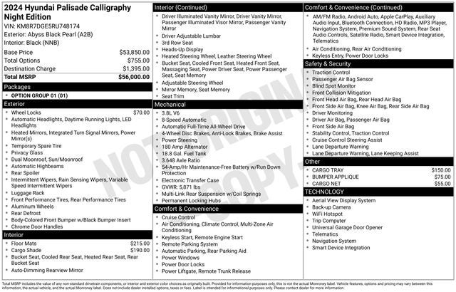 2024 Hyundai Palisade Calligraphy Night Edition 3.8 Liter V6 AWD 3rd Row Seating