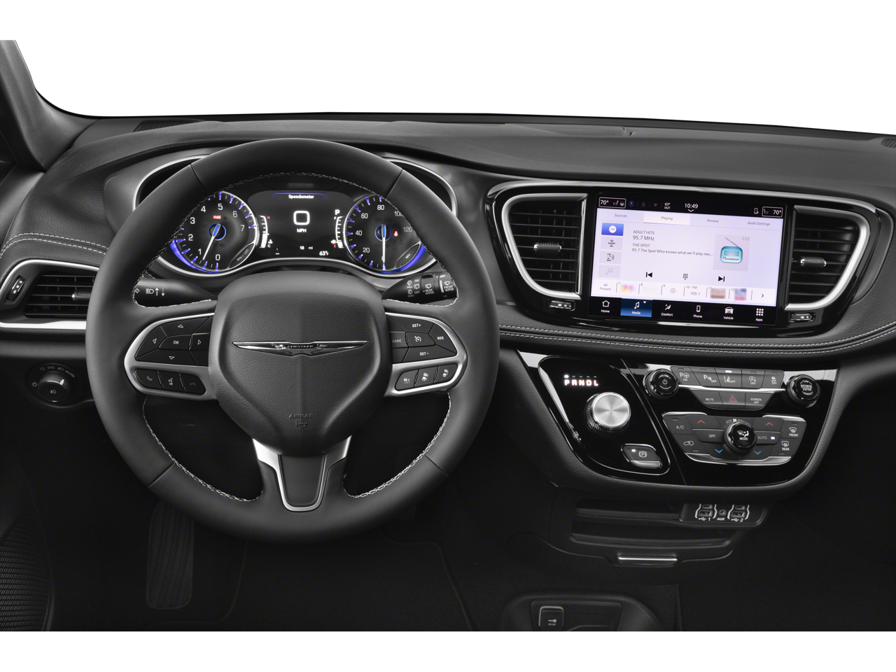100th Anniversary Buzz Model Package (100th Anniversary Buzz Model Graphic, Black Day Light Opening Moldings, Granite Crystal Exterior Accents, Granite Crystal Exterior Badging, Premium Fascia-Upper/Lower Grilles/Granite Crystal, Premium Rear Fascia Granite Crystal, and Wheels: 20 x 7.5 Luster Gray Aluminum), Quick Order Package 27L, Safety Sphere (360 Surround View Camera System and ParkSense Front/Rear Park Assist with Stop), 10.1 Touchscreen Display, 17 x 7.0 Aluminum Wheels, 3.25 Axle Ratio, 3rd row seats: split-bench, 4-Wheel Disc Brakes, 4G LTE Wi-Fi Hot Spot, 6 Speakers, ABS brakes, Air Conditioning, Alloy wheels, AM/FM radio: SiriusXM, Apple CarPlay, Apple CarPlay/Android Auto, Auto-dimming Rear-View mirror, Automatic temperature control, Black Seats, Brake assist, Bumpers: body-color, Caprice Leatherette Bucket Seats, Compass, Connectivity - US/Canada, Delay-off headlights, Disassociated Touchscreen Display, Driver door bin, Driver vanity mirror, Driver's Seat Mounted Armrest, Dual front impact airbags, Dual front side impact airbags, Electronic Stability Control, Emergency communication system: Chrysler Connect, For Details, Visit DriveUconnect.com, Four wheel independent suspension, Front anti-roll bar, Front Bucket Seats, Front dual zone A/C, Front fog lights, Front reading lights, Fully automatic headlights, Garage door transmitter, Google Android Auto, GPS Antenna Input, Heated door mirrors, Heated front seats, Heated steering wheel, Illuminated entry, Integrated Active Noise Cancellation, Integrated Center Stack Radio, Knee airbag, Low tire pressure warning, Memory seat, MOPAR Paint Protection Film, MyFlexCare Service Plan, Occupant sensing airbag, Outside temperature display, Overhead airbag, Overhead console, Panic alarm, ParkView Rear Back-Up Camera, Passenger door bin, Passenger seat mounted armrest, Passenger vanity mirror, Power door mirrors, Power driver seat, Power Liftgate, Power steering, Power windows, Radio data system, Radio: Uconnect 5 with 10.1 Display, Rain sensing wipers, Rear air conditioning, Rear reading lights, Rear window defroster, Rear window wiper, Reclining 3rd row seat, Remote keyless entry, Security system, Speed control, Split folding rear seat, Spoiler, Steering wheel mounted audio controls, Tachometer, Telescoping steering wheel, Tilt steering wheel, Touring Suspension, Traction control, Trip computer, Turn signal indicator mirrors, USB Host Flip, Variably intermittent wipers, and VoltmeteR.